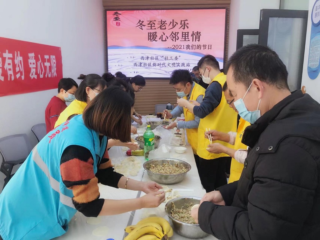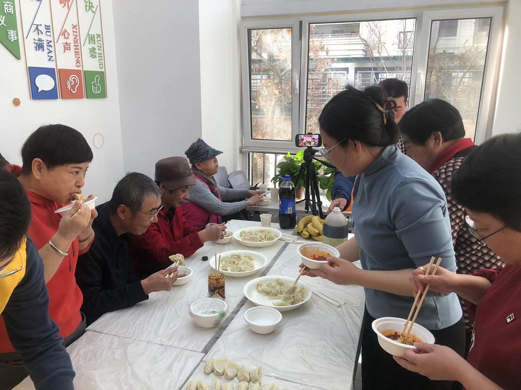 为了推动“我为群众办实事”实践运动取得实效,让失独家庭的群众过上一个温暖愉快的冬至节,12月21日,甘肃AG亚娱集团集团志愿者效劳队联合敦煌路街道西津社区,组织辖区失独家庭11名居民群众举办了“冬至老少乐 暖心邻里情”运动,为他们送上了一道温暖祥和的饺子“盛宴”。