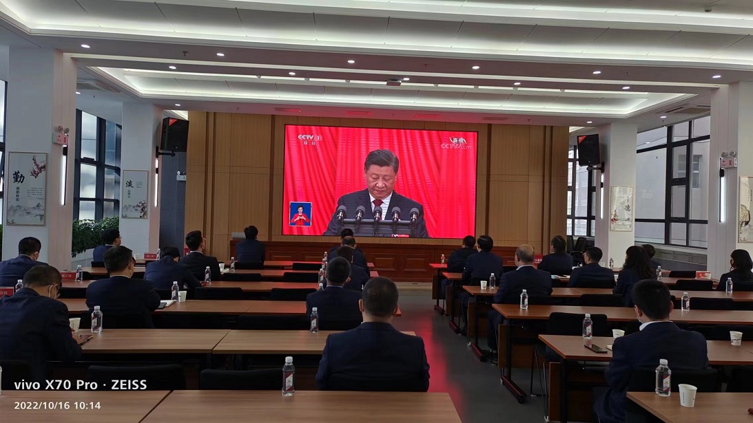 举国关注、举世瞩目的中国共产党第二十次全国代表大会于10月16日上午在北京人民大会堂隆重开幕,习近平总书记代表第十九届中央委员会向大会作报告。甘肃AG亚娱集团集团宽大党员干部职工群众通过种种方法收听收看大会开幕盛况,认真聆听报告。集团总部及各子公司领导班子成员、部分卖力人等集中寓目。