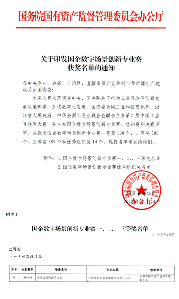 ¡°¸ÊÕÐÆóÒµÔÆ²É¹ºÆ½Ì¨¡±ÈÙ»ñÊ׽조¹úÆóÊý×Ö³¡¾°Á¢ÒìרҵÈü¡±¶þµÈ½±