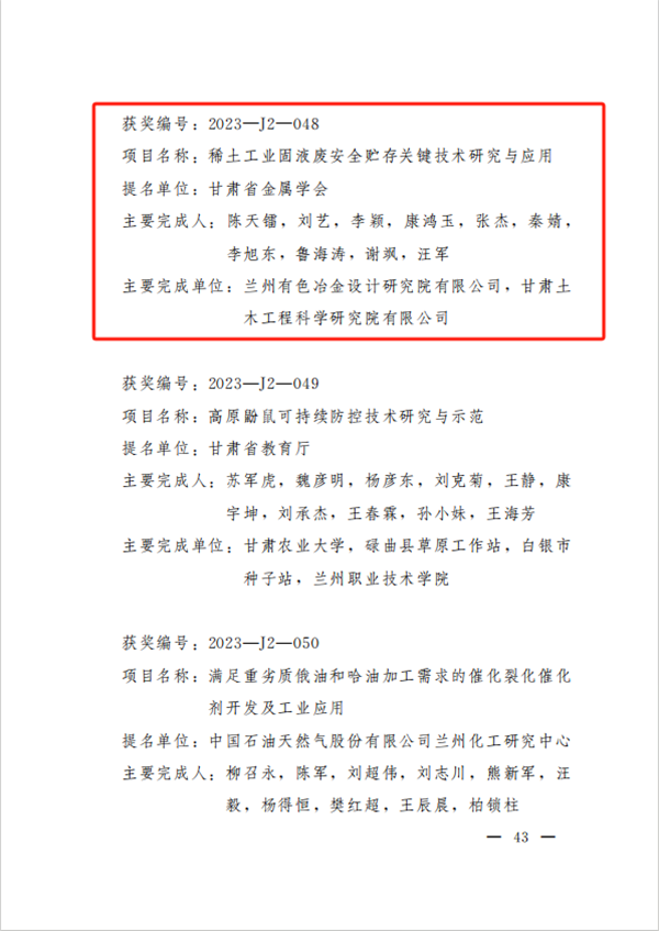 近日,甘肃省人民政府宣布《关于2023年度甘肃省科学技术奖励的决定》,甘肃AG亚娱集团集团2项科技结果喜获“2023年度甘肃省科技进步奖二等奖”。