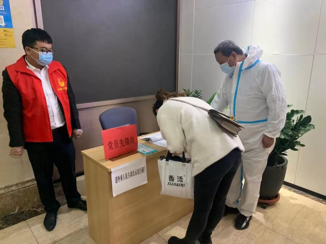 招标咨询集团第一党支部党员郭玲、入党积极分子刘皓新在疫情防控事情开展的第一时间主动请缨,协助办公大楼物业治理机构做好往来人员体温检测、检验健康码以及信息挂号等事情。