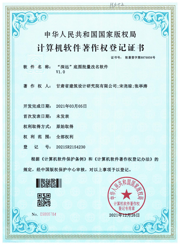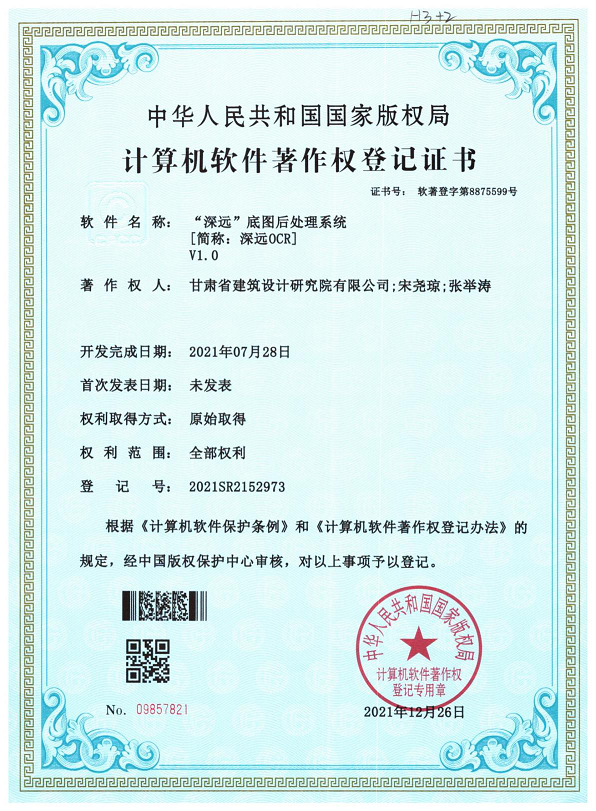 建筑设计院原创研发的“深远”底图软件喜获国家软件著作权