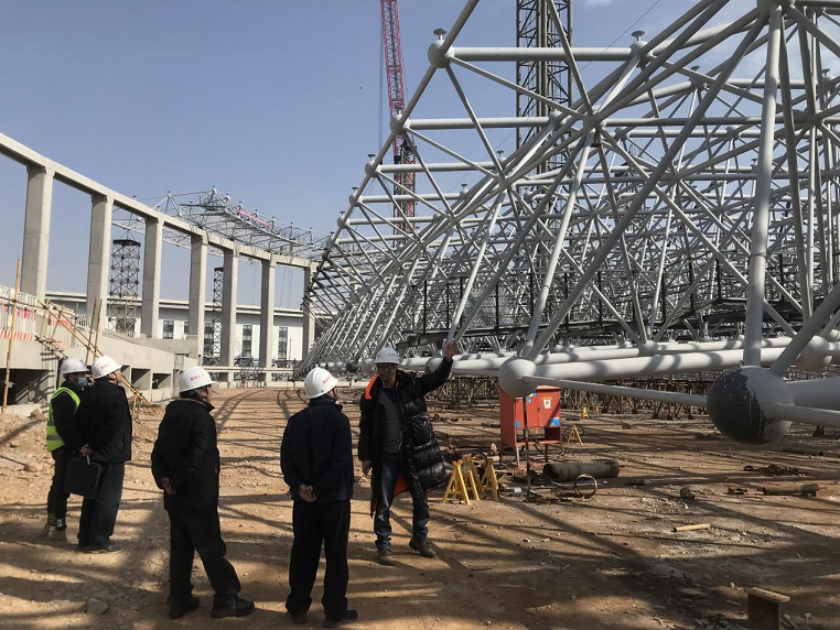 近日,甘肃省建筑设计研究院有限公司宁静生产部对甘肃省临洮体育训练基地二期建设(溜冰馆)项目复工情况及钢网架吊装提升情况进行督导检查。