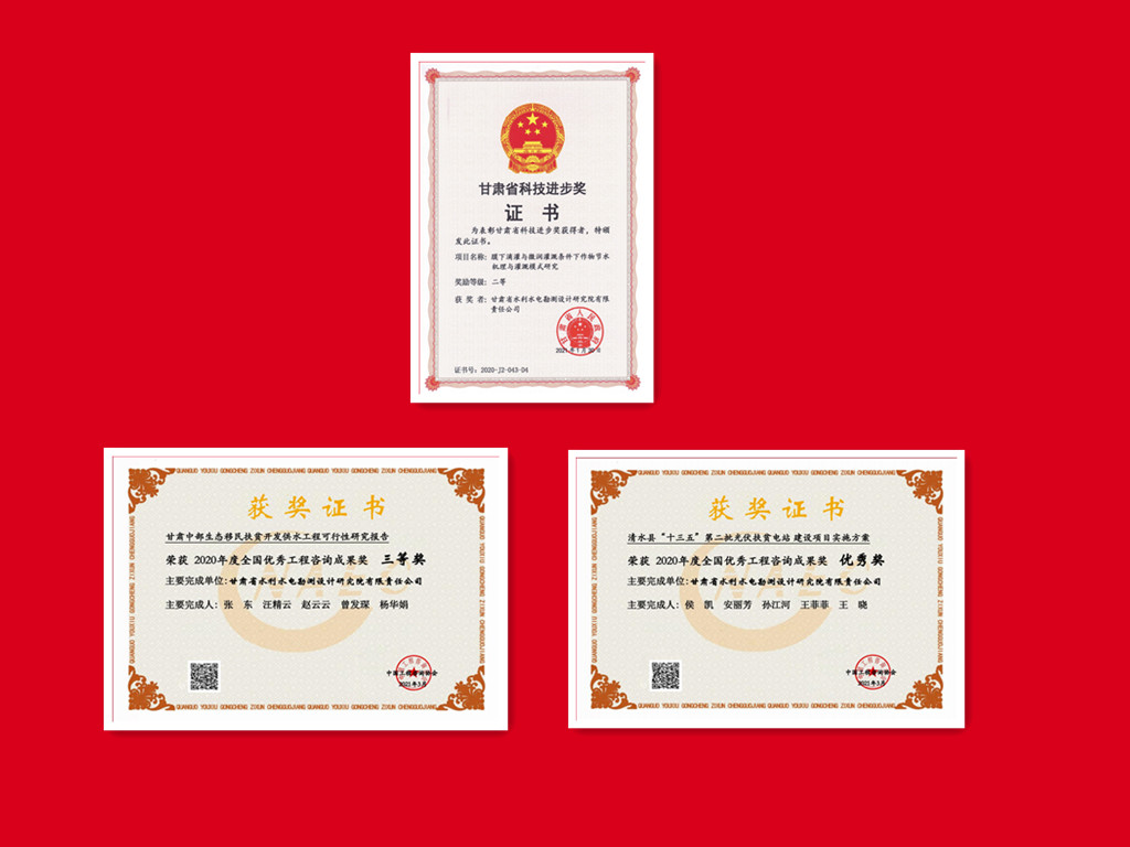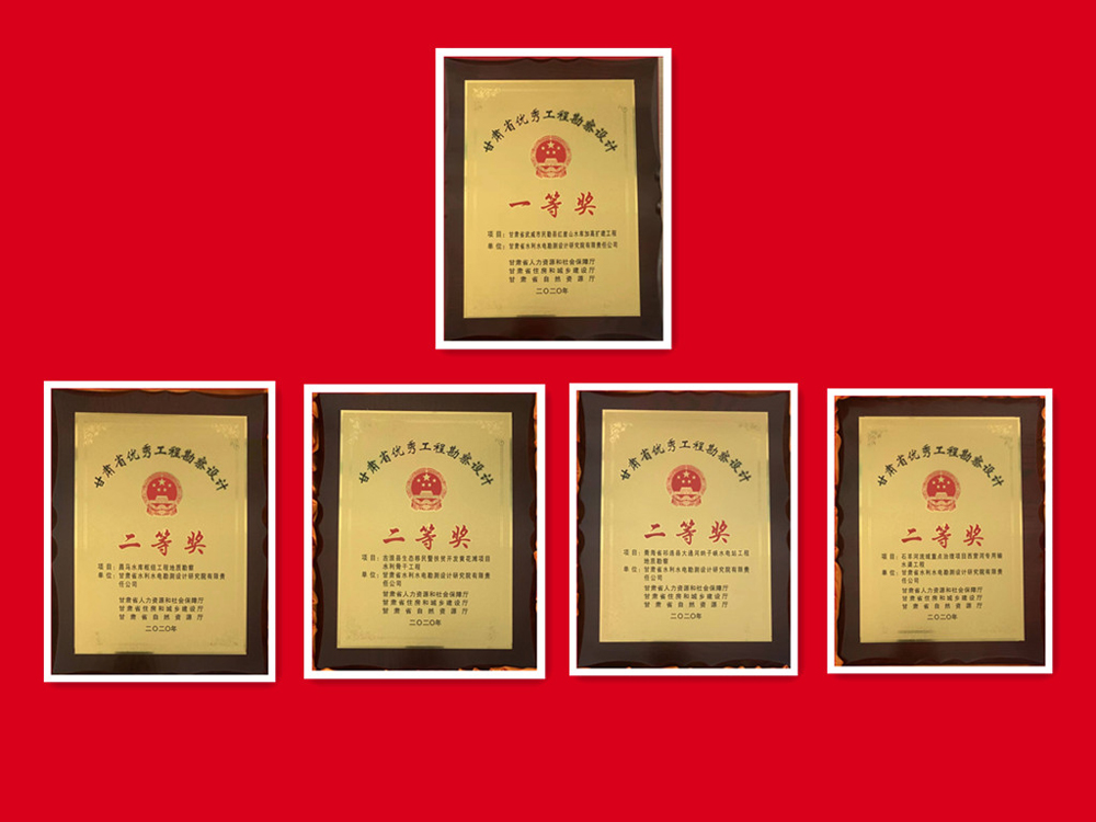 科研结果在工程实践中开花结果,多个项目获技术表扬奖励:《民勤县红崖山水库加高扩建工程》获甘肃省优秀工程勘察设计一等奖;《石羊河流域重点治理项目西营河专用输水渠工程》《古浪县生态移民暨扶贫开发黄花滩项目水利主干工程》《大通河纳子峡水电站工程地质勘察》《昌马水库枢纽工程地质勘察》划分获甘肃省优秀工程勘察设计二等奖;《甘肃中部生态移民扶贫开发供水工程可行性研究报告》获全国优秀AG亚娱集团结果奖三等奖;《清水县“十三五”第二批光伏扶贫电站项目》获全国优秀AG亚娱集团结果奖优秀奖。