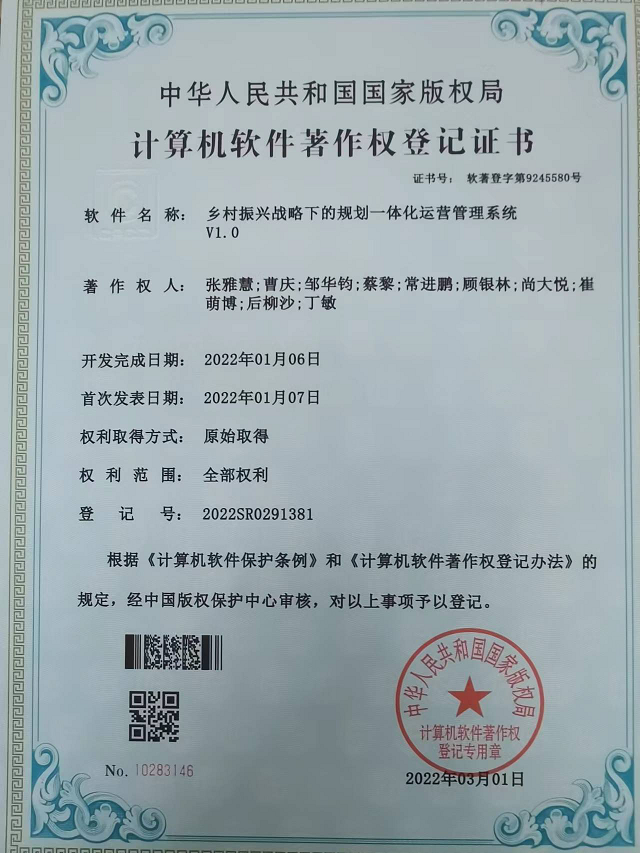 近日,从国家版权局传来好消息,甘肃省建筑设计研究院有限公司自主研发的“乡村振兴战略下的计划一体化运营治理系统V1.0”,获得国家版权局宣布的盘算机软件著作权挂号证书。
