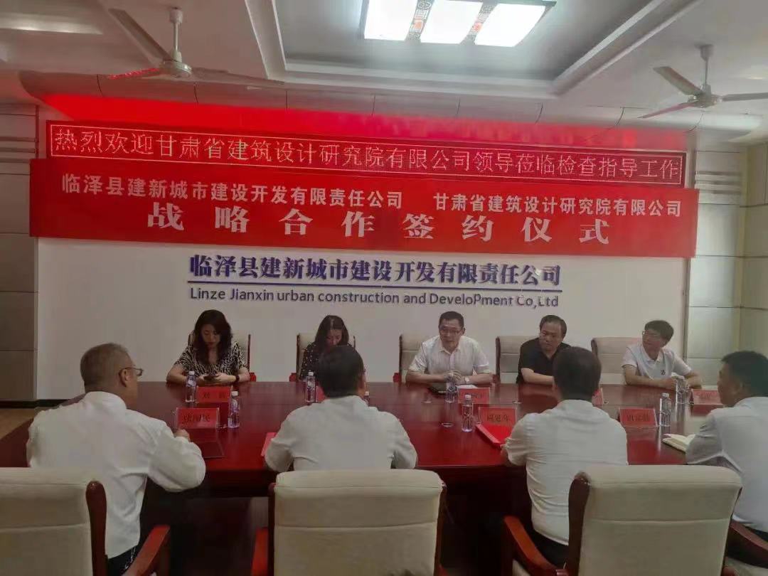 近日,临泽县建新都会建设开发有限责任公司与甘肃省建筑设计研究院有限公司举行战略相助协议签约仪式。临泽县副县长周延年、住建局副局长王增鑫、临泽县建新公司党支部书记田富勤,建筑设计院党委书记李向军,总经理助理、设计二院院长樊建仓出席签约仪式。