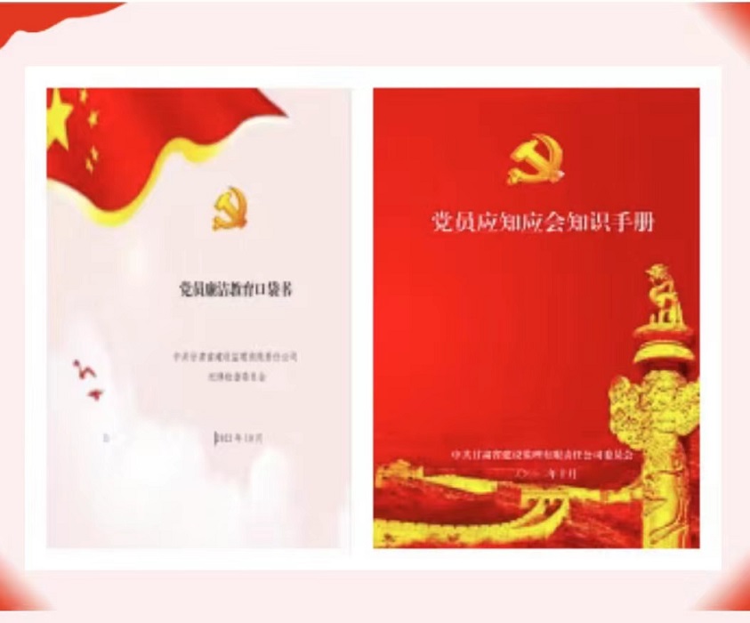 运动中,建设监理公司党委还为党员精心制作了《党员廉洁教育口袋书》及《党员应知应会知识手册》,筛选出党纪党规、党建知识、名言警句、家风家教、廉洁从业等各方面的常用知识,便当党员学习使用。此次系列党建运动不但拓展了党员干部职工的学习途径,富厚了党建宣传形式,更有助于进一步提升党员的政治素质和对党建事情的认知,凝聚廉政廉洁、风清气正的思想共识。
