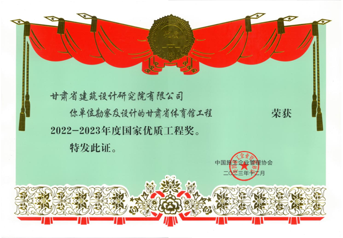 省建筑设计院设计的甘肃省体育馆工程获国家优质工程奖