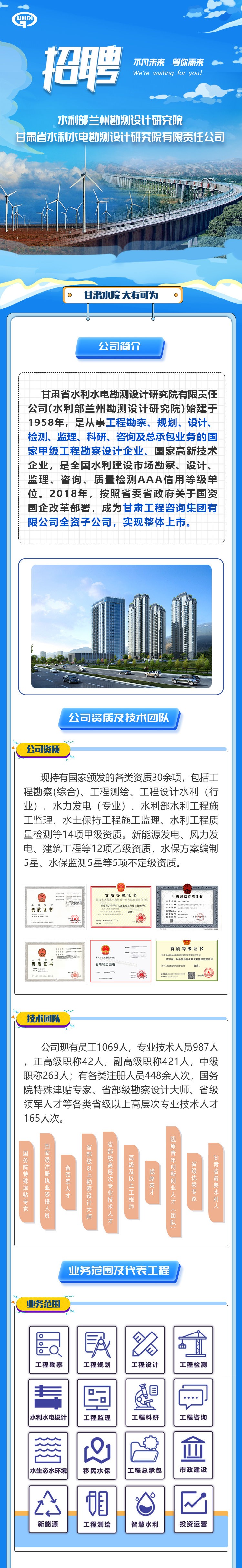 甘肃省水利水电勘测设计研究院有限责任公司招聘通告